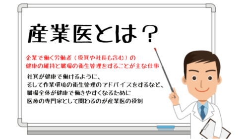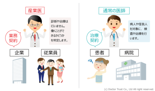 産業医=診断・治療は行わず、働けるか働けないかを判定する医師です。